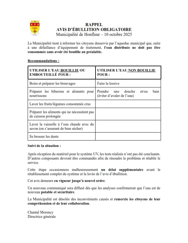 RAPPEL: AVIS D'ÉBULLITION OBLIGATOIRE